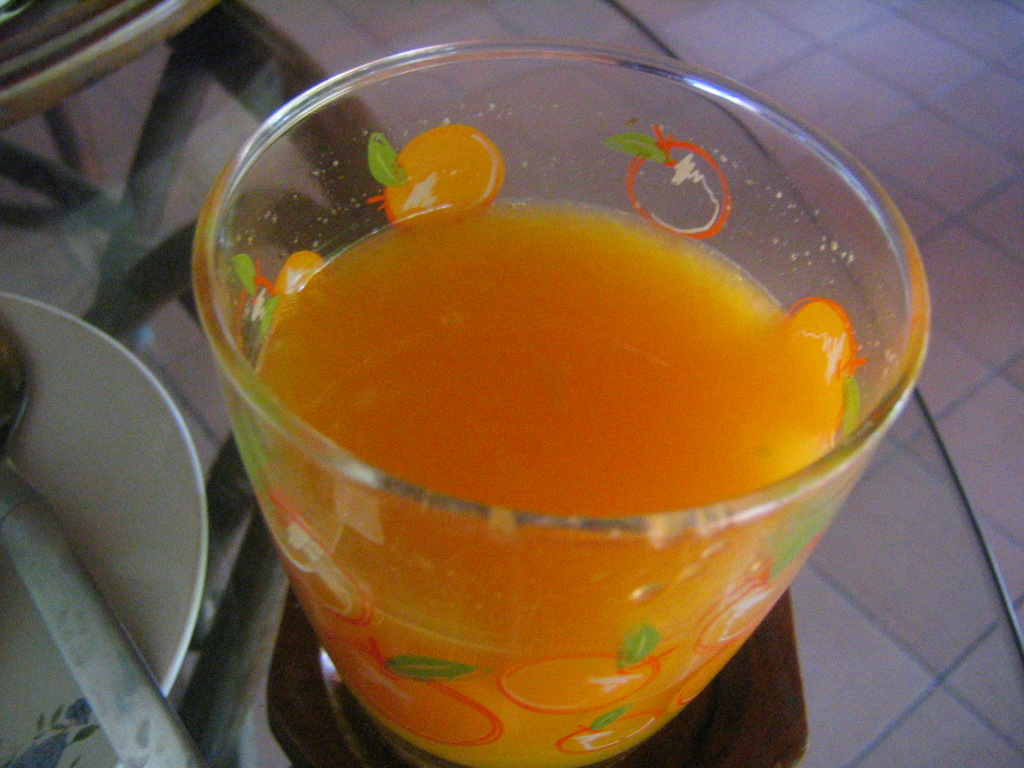 左にあるのがオレンジジュース。