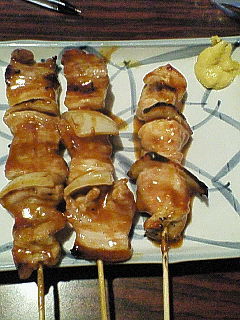 さっそく聞いてみると、豚の焼き鳥にたれとからしをかけて食べるのがうまいらしい。