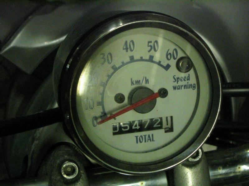 飛ばしすぎた。時速50kmで飛ばしていたら、対向車線に黒と白の車体で、頭に赤い飾りをつけた車が。。。