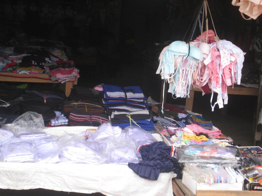 市場にいってみたが、そこはシェンクワンに住み人たちの買い物する場で、ニワトリとか魚、蛙が生きたまま売られていた。ブラジャーも紐売りだ。生活感があふれている。