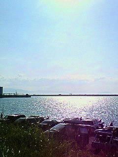 それで、海見てきた。太陽が海面に映し出され、海面がキラキラ光ってた。でも浜辺は日曜日ということもあり、人が沢山。