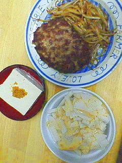 豆腐ハンバーグ(ひき肉ねりねりした!)、大根サラダ、もやし炒め、冷奴と、ちょっと豪勢に!!