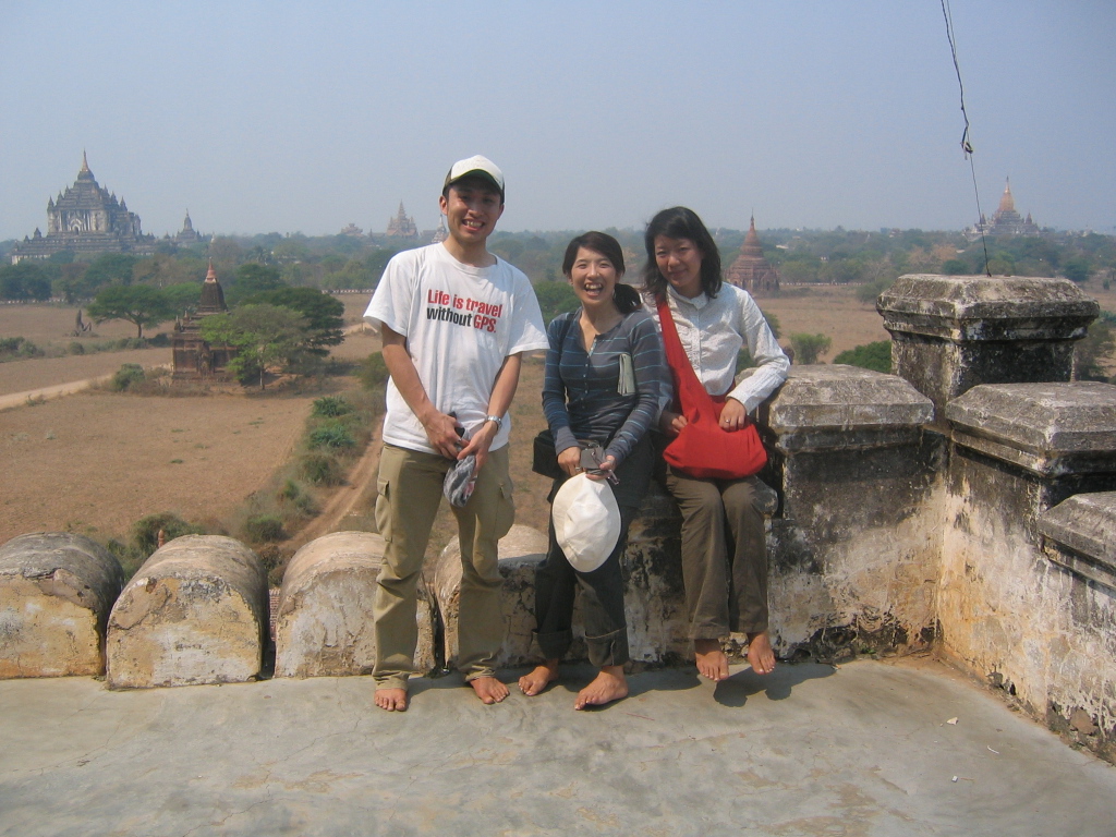 とりあえずシュエサンドーパヤーにのぼってみたら、日本人女性が2人いた。