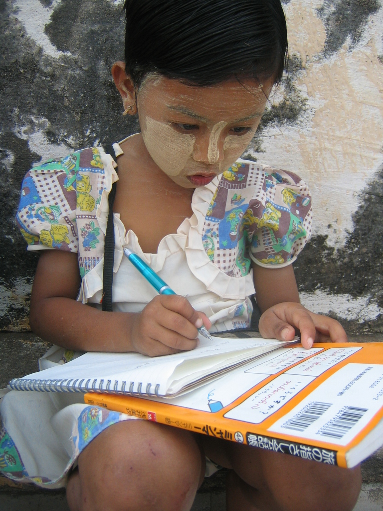 また、指さし会話帳(日本語とミャンマー語の辞典みたいなもの)を見せたら、読み出したんだ。
