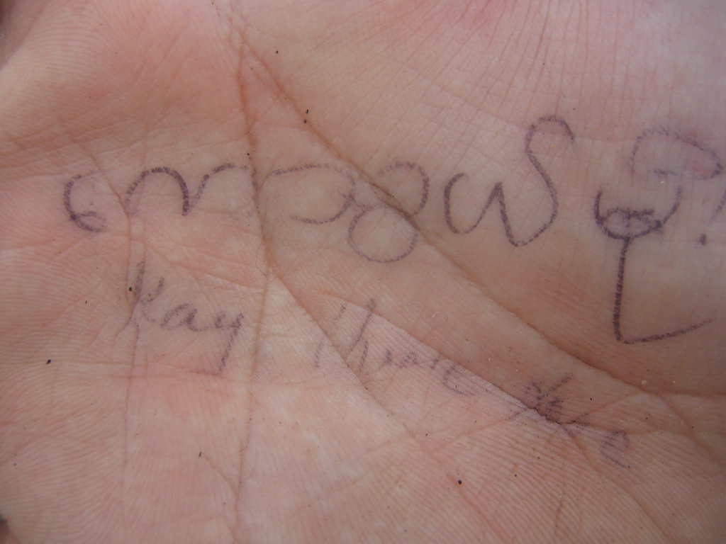 俺の手にも何かかかれた。