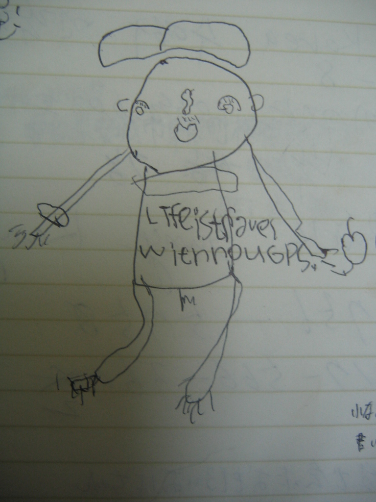 ちょうど、この日記帳の紙が余っていたから、ボールペンでその子達に絵を描いてもらった。