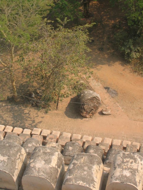 以前、このシュエサンドーパヤーのてっぺんが落ちて、それでてっぺんだけ新しいのを作ったんだって。