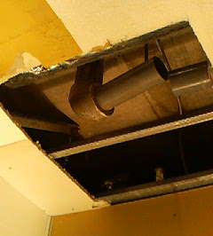 家についたら,水漏れが止まってたけど,天井はまだあいたまま.